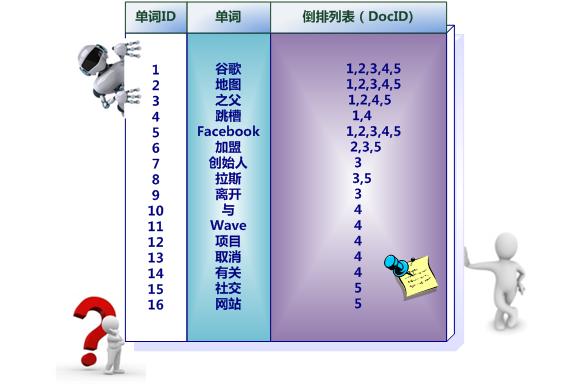 有了这个索引系统,搜索引擎可以很方便地响应用户的查询,比如用户输入查询词“Facebook”,搜索系统查找倒排索引,从中可以读出包含这个单词的文档,这些文档就是提供给用户的搜索结果,而利用单词频率信息、文档频率信息即可以对这些候选搜索结果进行排序,计算文档和查询的相似性,按照相似性得分由高到低排序输出,此即为搜索系统的部分内部流程。